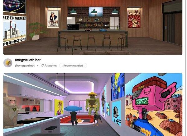 从官网可见,许多用户在Oncyber上建立了独具一格的在线3D空间。一些NFT收藏家创建了虚拟艺术画廊,还有一些社区和组织在其中举办在线活动。