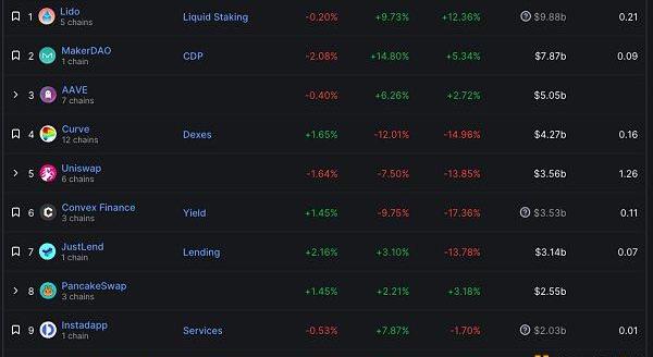 DeFi项目锁定资产前十排名及锁仓量数据来源:defillama