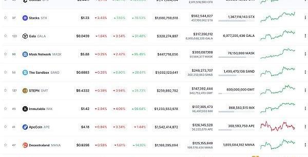 24小时NFT交易量、交易量前十项目数据来源:Coinmarketcap