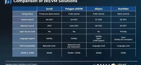 在可扩展性和隐私用例之外,零知识证明的用例十分广泛,其在Web3中发挥的作用也更加清晰。目前已有不少项开始将该技术用于项目实践,据Messari统计显示,零知识证明最广泛应用的扩展领域的一众项目将在2023年迎来发展的关键期,如Scroll、PolygonzkEVM等项目主网将陆续上线。在《扩容赛道开年即冲刺,盘点近期上线测试网的L2项目》一文中,也介绍了近期上线测试网的零知识证明项目。