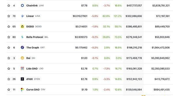 DeFi总市值及前十代币数据来源:coingecko