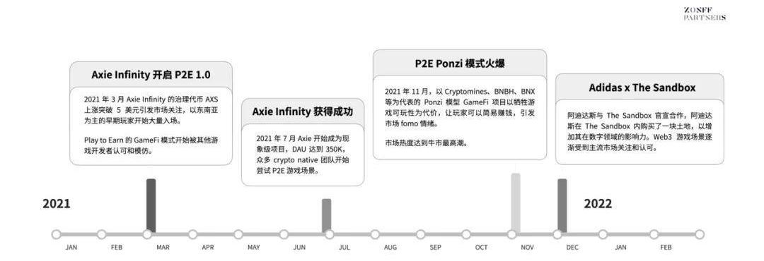 前者cryptonative的创业者尝试游戏场景所做的项目,能在2021年下半年成功火起来,即意味着其团队最晚也是在2021年上半年看到了市场机会并开始准备资金寻找团队开发产品。即使当时众多的游戏以其Ponzi的经济模型受到不少人诟病,并被后来许多玩家认为那根本不属于游戏,但团队本身的市场判断力与执行力是很强的。这部分创业者熟悉区块链行业的基本逻辑,知晓公链、NFT、Tokenomics、DeFi、Twitter/Discord市场宣传等方面的玩法,放弃了游戏的“可玩性”转为以代币价格上涨套利为主要目的。