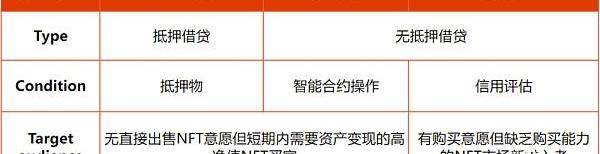 目前大部分的NFT借贷范式基本为Compound,Aave等协议中存在的三种:点对点撮合,流动池和稳定币,提供超额抵押借贷或闪电贷等功能。而BNPL这类新兴的无抵押私人借贷则可能在需求侧引入更多样的用户客群。我们从下图更直观地理解抵押借贷和无抵押借贷两个垂类:
