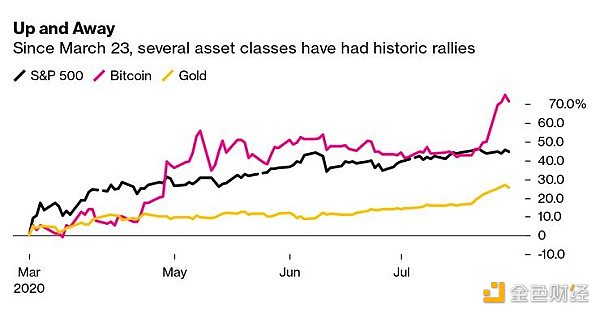 就在新冠病爆发触底之后,美国股市也开始反弹:根据Bespoke Investment Group分析数据显示,从3月23日至7月1日,标普500指数上涨了40%,创下1933年以来表现最佳的100天。与此同时,比特币年内迄今涨幅已经达到55%,黄金则上涨29%,涨幅均打破了2011年创下的价格上涨记录——当然,有这样的投资回报成绩并不奇怪,因为投资者纷纷涌入数字货币和贵金属来对冲通胀。