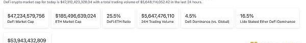 2、过去24小时去中心化交易所的交易量56.47亿美元