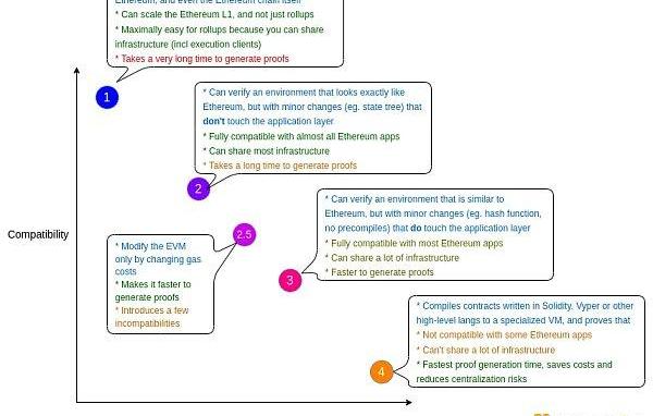 EVM兼容性是在语言级别实现的,这意味着从Solidity到SNARK虚拟机。由于这个过程,它增加了编译器方面的风险。EVM重点还限制了主流活动的扩展和开发,这些活动可以通过其他类型的VM完成。