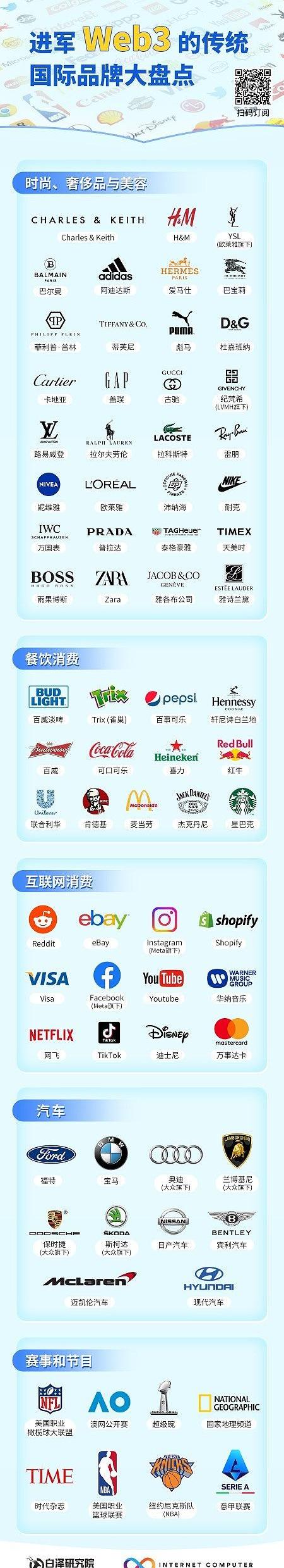 根据品牌咨询公司Interbrand?的报告称,目前有超过30%的国际品牌已经进入Web3。从LouisVuttion、Gucci等奢侈品牌到麦当劳、肯德基等餐饮品牌,世界上许多大品牌都正在探索Web3。