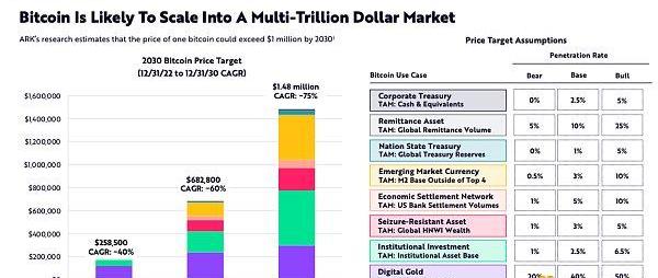 ARK的研究估计,到2030年一个比特币的价格可能超过100万美元