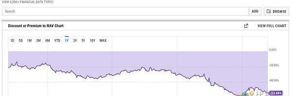 ETHE于2017年推出,管理资产约合50亿美元。根据YCharts.com的数据,该基金当前交易价格较其资产净值的负溢价约为54%。