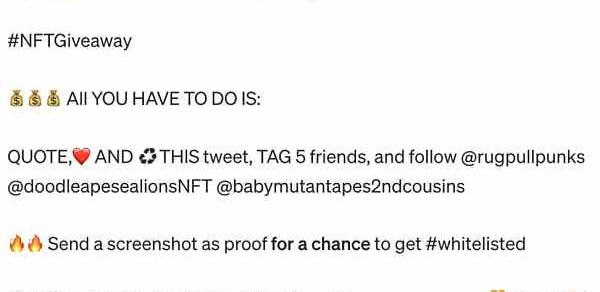 你可能会看到一些NFT赠品推文要求采取许多步骤,但这些大多是由机器人参与的。