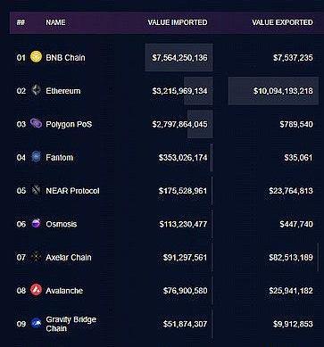 下面,你可以很好地概览有多少资产被桥接在各链上: