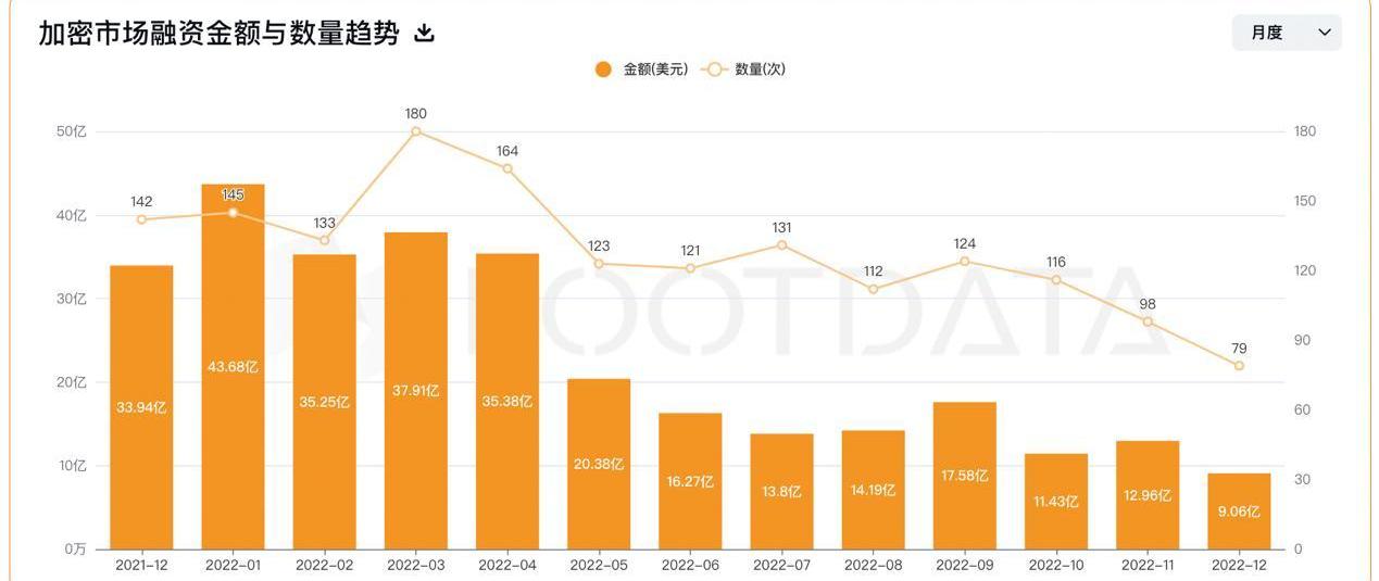从具体的投融资数据来看,随着加密市场的大幅回撤,多起暴雷事件的冲击,加密投融资市场的投资节奏从上半年到下半年呈现逐渐放缓的势态,估计在2023年投资依然会延续较为谨慎的投资节奏。