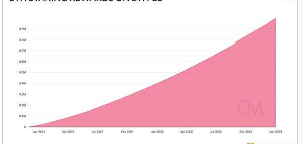 计划于2023年进行的第一次升级即上海升级,将支持从共识层提取所质押的ETH。这次升级预计将在早春进行,需要等待以太坊测试网测试成功后。由于要获得ETH质押奖励要求验证者的有效质押余额需维持在32ETH以上,精明的验证者应会提取32ETH以外的奖励以投入更高效的活动,例如存入DeFi协议。目前以太坊的共识层上累积并锁定了约1百万ETH质押奖励。