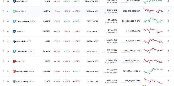 24小时NFT交易量、交易量前十项目数据来源:Coinmarketcap