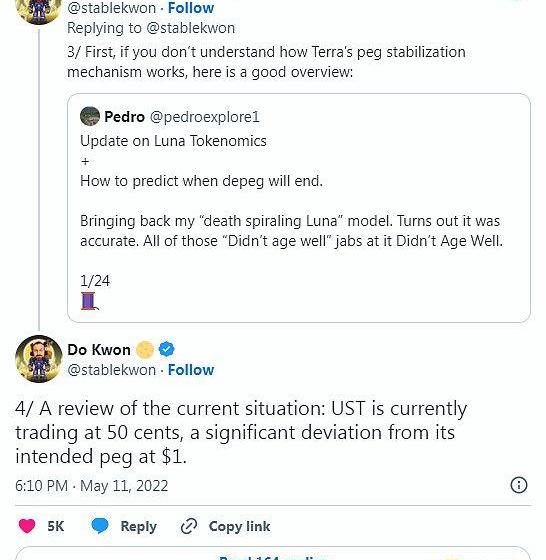 加密空间今年遭受了几次打击,其中包括Terra项目的崩溃。Terra从2022年开始成为加密行业的一个流行项目,其LUNA资产在年初位列市值排名前10位的加密货币。然而,在5月,由于其相关稳定币TerraUSD(UST)完全失去与美元的挂钩,该项目崩溃了。尽管这一年包含许多与奇观相关的推文,但下面来自该项目负责人的推文记录了一系列事件的一部分。