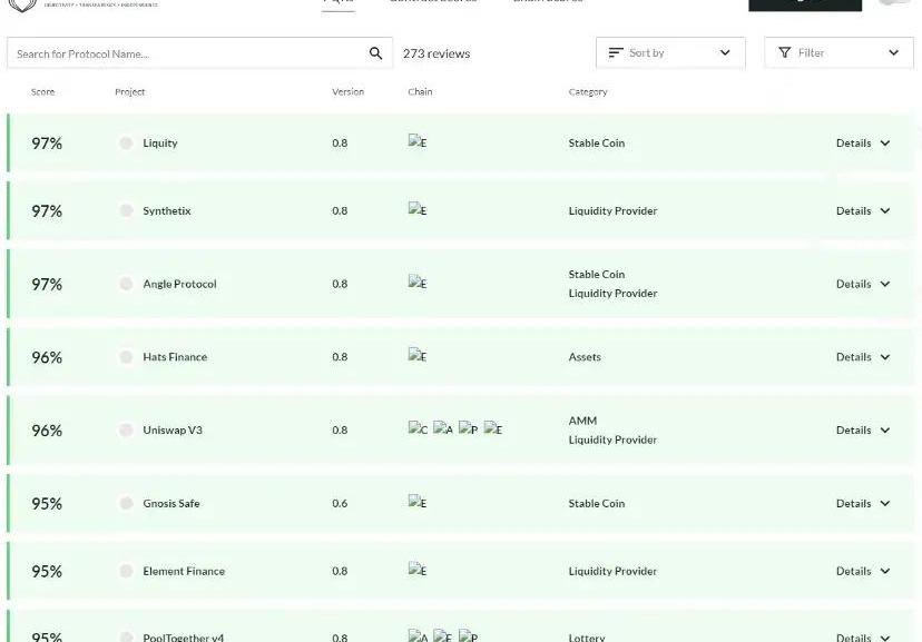 要考虑的方面那可太多了,要是全部都亲自验证,恐怕先得累死。说到这里,我们就不得不提到DeFiSafety。它会对这些协议进行一个验证,然后给出安全评分。
