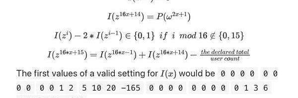我们引入一个辅助多项式I(x),它组成每个余额的比一部分,每16个位置跟踪一个带有偏移量的总和,只有当实际的总和与声明的总和相匹配时,它的总和才为零。如果z是单位的-128阶根,我们可以证明以下等式: