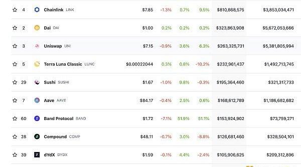 DeFi项目锁定资产前十排名及锁仓量数据来源:defillama