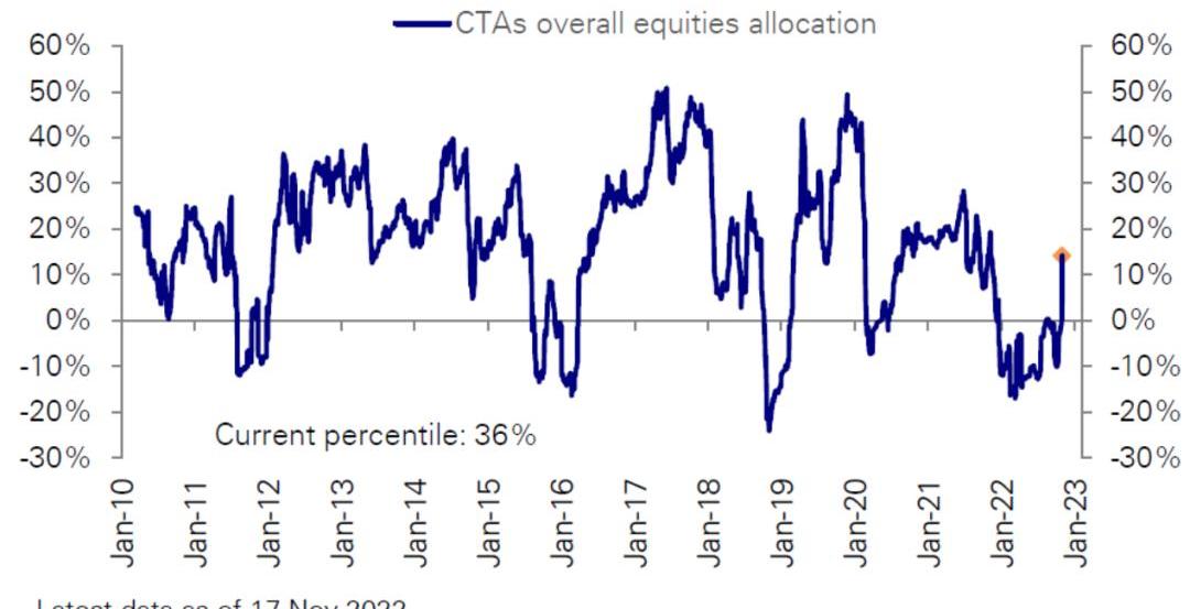 由于美国CPI数据推动的反弹,在期货市场持有多头和空头头寸的CTA在过去一个月中不得不买入约1460亿美元的股票。