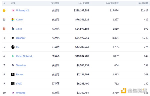 DeFi排名前十锁仓量 数据来源:DeFi Pluse