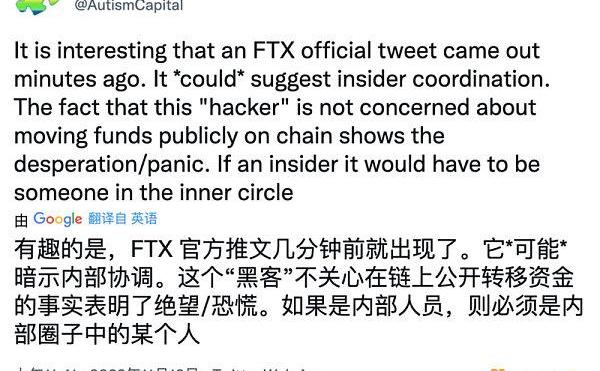AutismCapital发现,黑客的操作记录与FTX对外披露信息的时间节点不相符,而且黑客的操作权限极高,有人认为这并不像外部人员可以达到的。