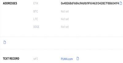 不仅个人可以使用,企业也可以利用ENS域名进行自身形象建设,著名运动品牌PUMA曾在2月份将官方推特更名为「PUMA.eth」,另据ENS网站信息显示,该域名下绑定的网址与推特均已设定为PUMA官方信息。