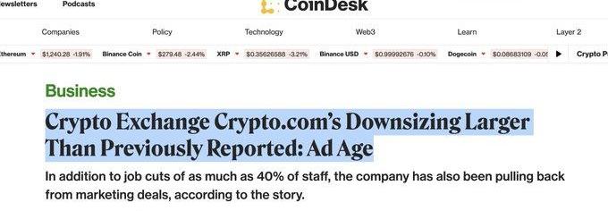 尽管目前还没有关于Crypto.com确切的资产负债表公开信息,但如果我们搜索该公司过去几个月的相关历史新闻,会发现均与裁员有关。而CoinDesk10月发布的一篇文章更是披露,Crypto.com的裁员数字远比报道中的严重。更吓人的是,根据Nansen标记的Crypto.com已知的钱包地址中,SHIB竟有5亿美元,在以太坊资产里占比达21%,而根据0xScope更详尽的地址统计显示,Crypto.com目前的总资产仅有约30亿美元。如此巨大的加密机构没,大部分流动性居然是依靠流行Meme币在支撑。