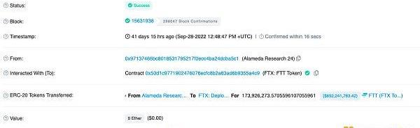 40天前,价值超过40亿美元的1.73亿枚FTT代币在链上转移。