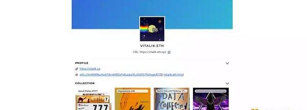 虽然「vitalik.eth」不能够直接被输入浏览器中被解析,但诸如「vitalik.eth.xyz」「vitalik.eth.link」就可以。读者不妨也试一试,比如往浏览器中输入「vitalik.eth.xyz」,就可以看到Vitalik默认生成的ENSProfile;输入「vitalik.eth.link」,就可以看到Vitalik的个人主页: