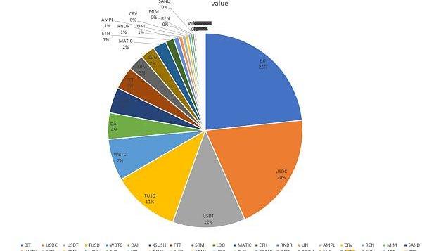 我们分析了Alameda的资产情况,目前Alameda的可监控钱包持有价值排名靠前的代币如下:BIT、SUSHI、FTT、SRM、LDO、MATIC、RNDR等。