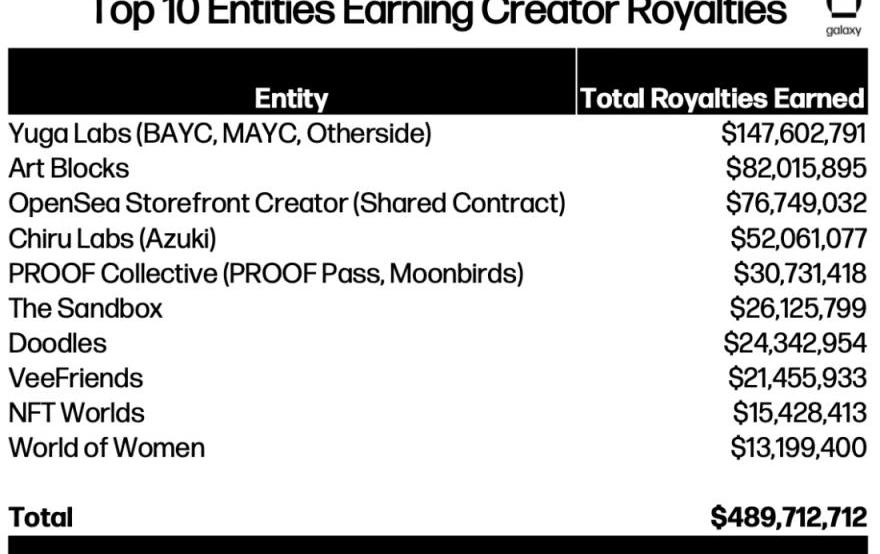 全网已经向基于以太坊的NFT集合的创作者支付了价值超过18亿美元的版税。此外,在OpenSea这个迄今为止向创作者支付最多版税的平台上,向创作者支付的平均版税比例在过去一年中翻了一番——从3%一路飙到6%。包括传统玩家和加密货币原生组织在内的NFT主要品牌,已经从二级销售产生的版税中获得了数亿美元的收入。事实上,仅10个实体就占了所有版税收入的27%,482个NFT系列占了迄今为止所有版税收入的80%。然而最近在更广泛的加密货币社区却出现了反对版权模式的声音,他们认为「版权」威胁到NFT诞生之初的价值主张。而现实情况是,版税并不是在加密世界中继承链上永久性的原生产物。