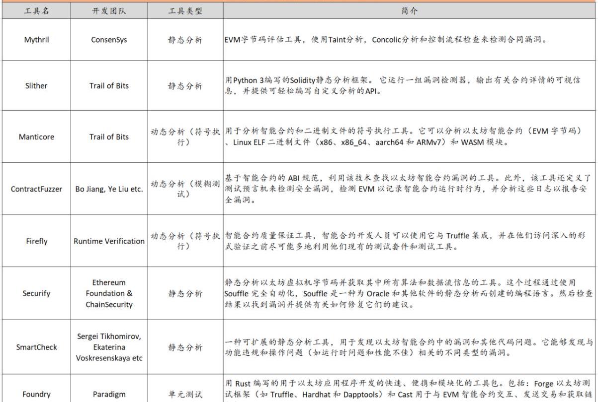2)智能合约审计的自动化工具目前市面上已经由很多,常见的有十几种大多开源。这个方向通过卖工具来收费的商业模式尚未跑通,核心原因是:1)黑客和安全防御者的博弈关系是anarmsraceandtheattackisalwaysamovingtarget,魔高一尺道高一丈。安全工具一旦推出,黑客就会尝试绕过它,开发出新的攻击形式。所以安全工具只能不断迭代更新将攻击门槛提高;2)大部分工具使用门槛不低,会使用专业安全分析工具产品的人少,因此限制了市场规模(虽然RuntimeVerification有在推给普通开发者使用的Firefly,ConsenSysDilligence也有MythX);3)安全分析工具只能覆盖主流的漏洞,而跟据协议业务逻辑的经济模型的不同客户主观更希望审计团队人工提供定制化的服务。