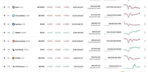 24小时NFT交易量、交易量前十项目数据来源:Coinmarketcap