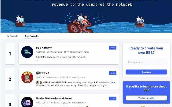 BBSNetwork要做去中心化的Reddit,它支持内容共享,用自己的原生Token奖励创作者、策展人和其他利益相关者。任何人都可以在任何主题上创建BBS,并在自己的域上运行它。每个帖子实际上都是一个NFT,用户可以创建、购买、出售和从他们拥有的帖子的广告空间中收取收入。该平台产生的收入以全自动、透明和市场驱动的方式在所有BBS生态系统参与者之间共享,广告收入会自动分配给帖子发布者、内容策展人和版主,在经济上奖励做出贡献的成员并鼓励健康的社区团结。