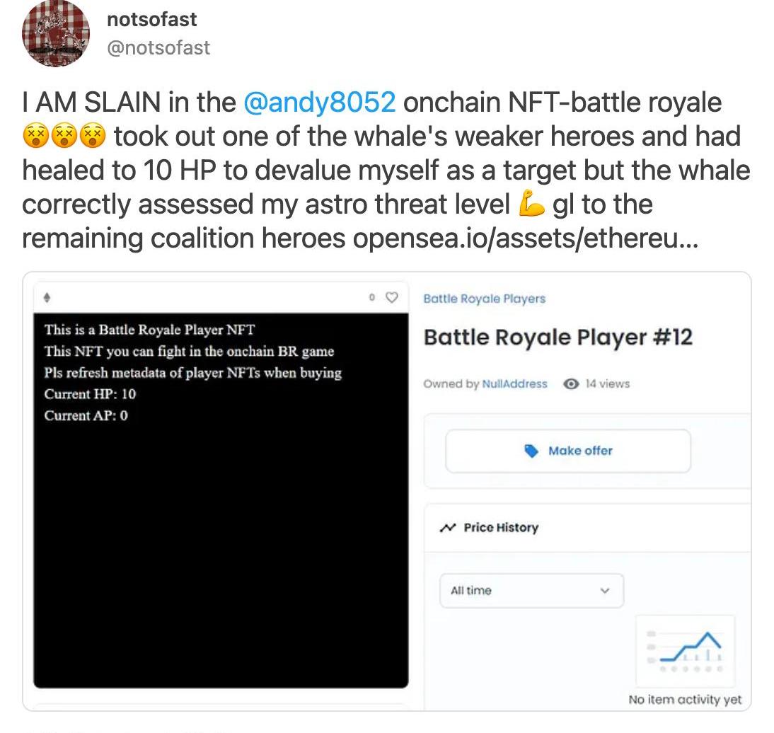 到目前为止,我们已经看到了很多关于简单方面的实验。例如,andy8052的《BattleRoyaleOnchain》。非常简单但很有趣!
