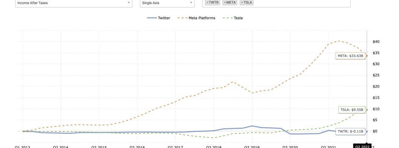更严重的是,推特目前仍旧是亏损状态,并且这种仍旧有继续扩大的趋势,和马斯克的特斯拉相比,以及Meta相比,推特的盈利能力并不强,在2021年的亏损便已经超过2亿美元。