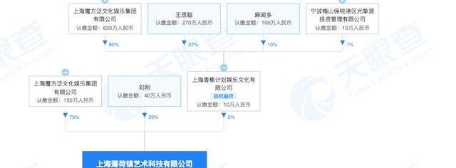 天眼查信息显示,“名堂MintTang”的运营主体薄荷镇艺术成立于2022年8月15日,注册资本200万人民币,法定代表人为孙茜婧。该公司股东包括上海香蕉计划娱乐文化有限公司、上海魔方泛文化娱乐集团有限公司,及自然人刘刚。其中,上海香蕉计划娱乐文化有限公司持有上海薄荷镇艺术科技有限公司的5%股份,而王思聪持有上海香蕉计划娱乐文化有限公司27%的股份。