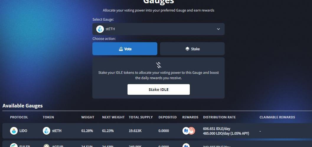IdleFinancetoken是Idle。它用于治理,可以质押以提高保险库存款的回报。该协议还用于激励投资者在协议上存入资产。