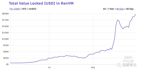 renBTC在Curve推出CRV代币后锁定资产量剧增三倍,DEFIPULSE
