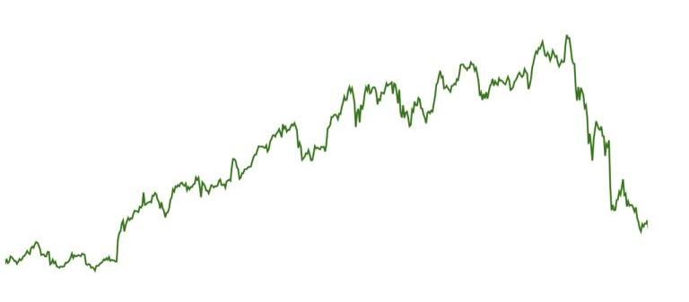 不过,这张图表不是英伟达最近两年的情况,而是其从2017年初到2019年初的股价走势;下面这张是它从2017年到今天的股价走势: