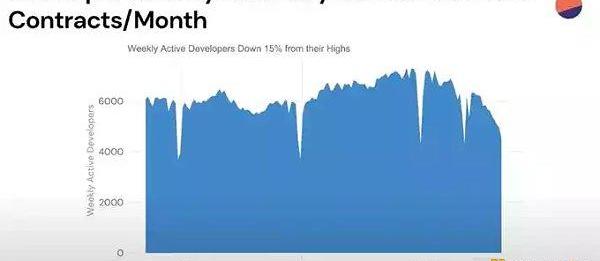 7)开发者:全球一共有27M开发者,而Web3的开发者只有16K。看来鼓动开发者加入Web3的路还很长。每周的活跃开发者数量相对稳定,约为每周6K个合约部署。