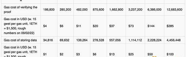 在链上运行设置的主要挑战是使受信任的设置仪式尽可能高效。理想情况下,提交捐款的费用不超过50美元。。下面,我们提供有关设置中最昂贵部分的更多详细信息。较低的Gas成本将降低贡献成本,并允许构建更长的参数!