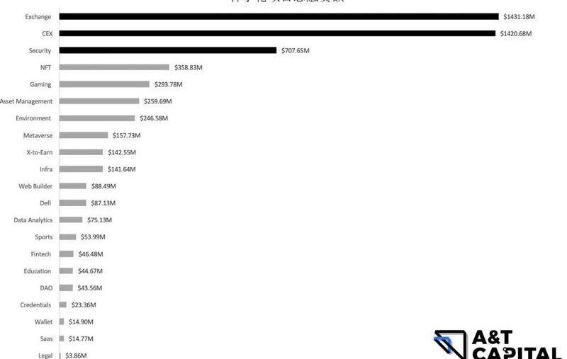 融资金额前三的类别:交易所、中心化交易所、金融科技。