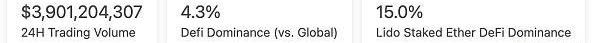 2.过去24小时去中心化交易所的交易量39.01亿美元