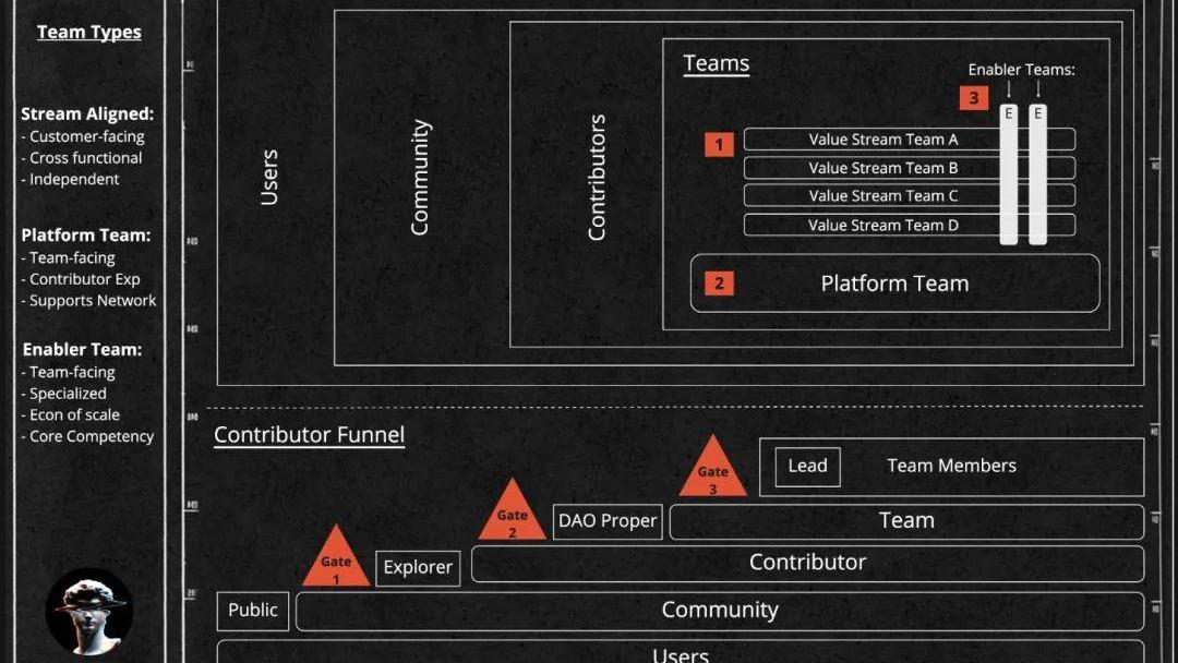 这些观察结果可能很有趣,但是如何将它们实施并应用于已经运行的DAO上呢?好消息是,这并不是DAO所特有的挑战。有一个TeamTopologies的研究机构,还有一种称为InverseConwayManeuver的技术,我们都可以申请使用。