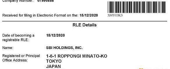 2020年12月,B2C2向CompanyHouse.UK提交实控人变更资料,SBIHoldings,Inc以拥有超过75%的股权成为B2C2实控人;