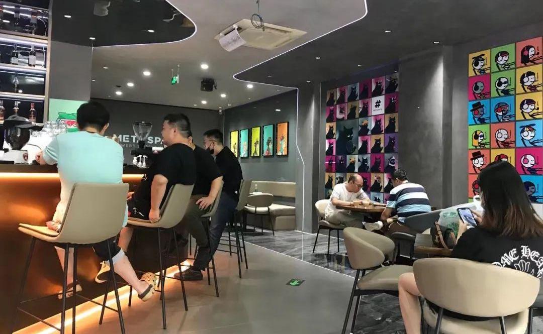 不过,当出租车在那个周末的中午把我带到MetaSpace咖啡馆门口时,我的内心是充满疑虑的,那是荷清路上的一栋公寓底商的临街铺面,左右「邻居」分别是爱玛电动车和链家门店,充满浓浓的生活气息。