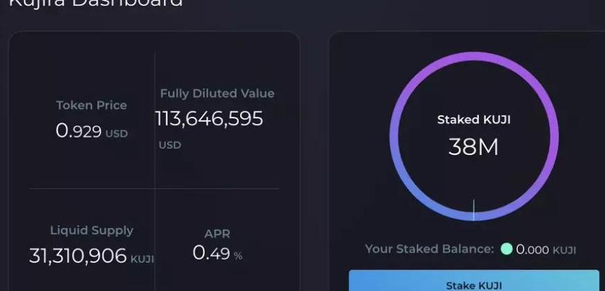 质押KUJI,赚取Kujira的部分收入,现在它的年利率是0.49%。产生的掉期费用是KUJI质押者的真实收入,随着采用率的增加和更多的dApp在Kujira上推出,APR应该会增加。