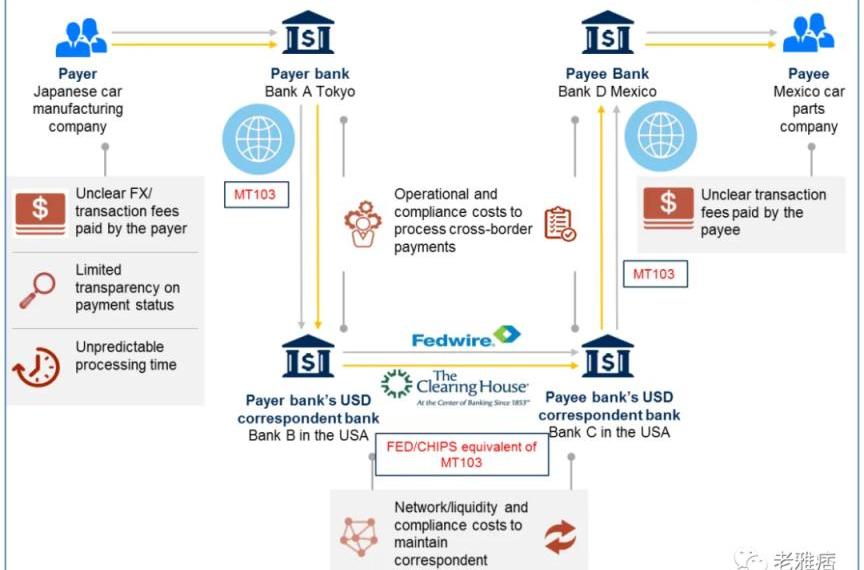 其中一个最明显的应用就是,在Web3中进行国际转账非常简单。以下是它目前在传统金融体系中的运作方式: