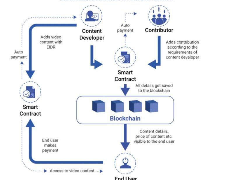 此外,媒体的版税分配已经变得越来越复杂。然而,区块链分发却为此提供了一个机会,可以更有效地简化参与和版税到整个参与者网络。对于存储在区块链上的每一块IP,版税支付可以被编入智能合约,并在使用时自动支付。
